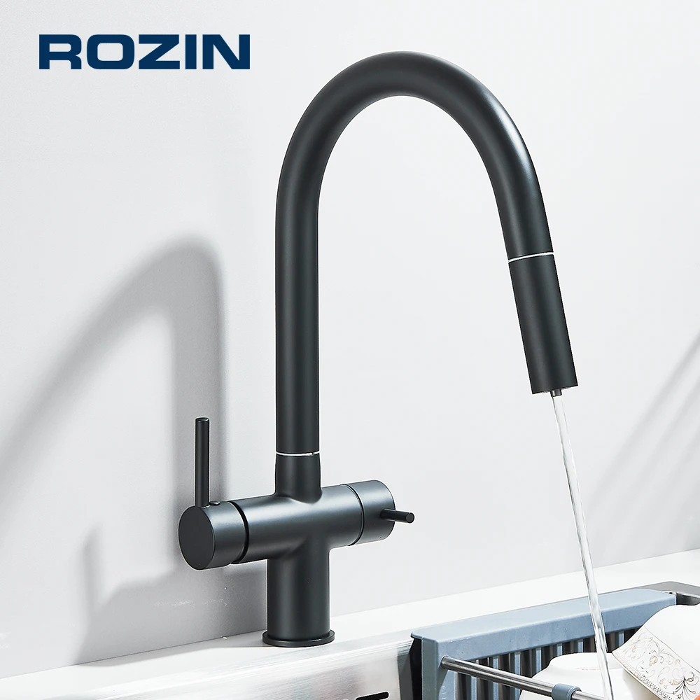 Filter Kitchen Faucet Pull Out Flexible Drinking Water Kitchen Faucets Dual Handle Metal 2 in 1 Hot Cold Water Mixer Tap