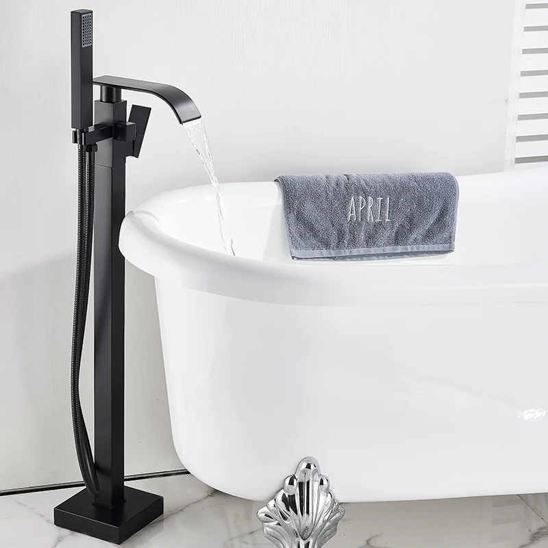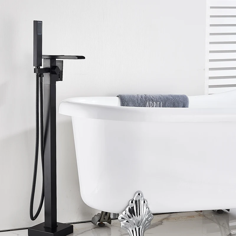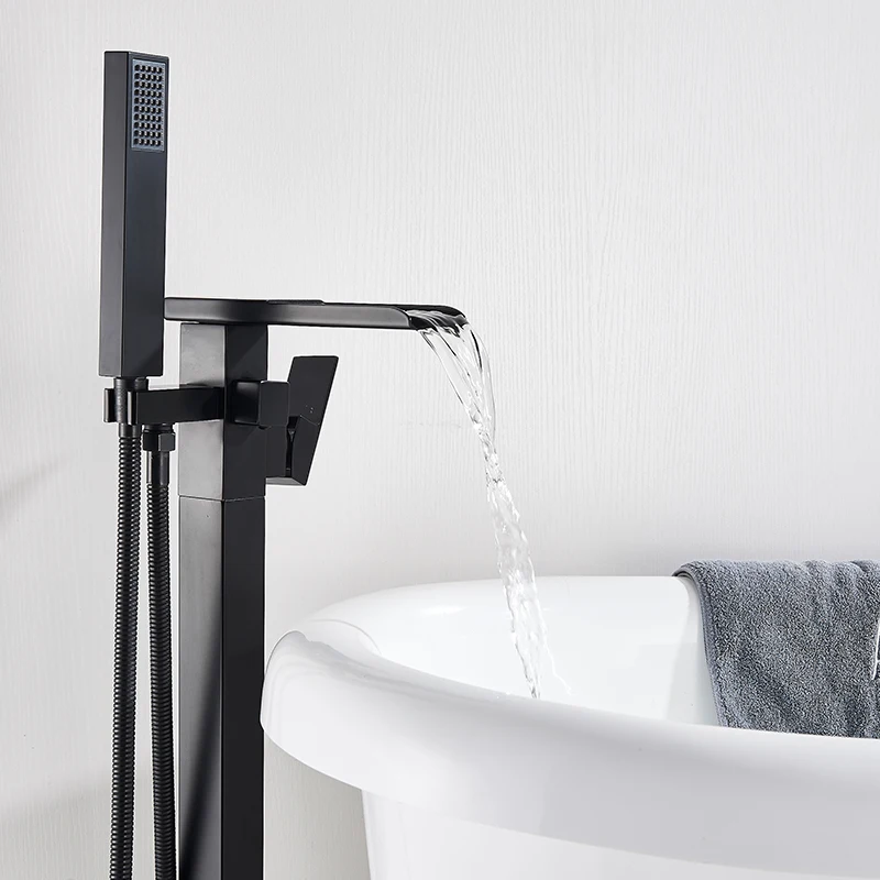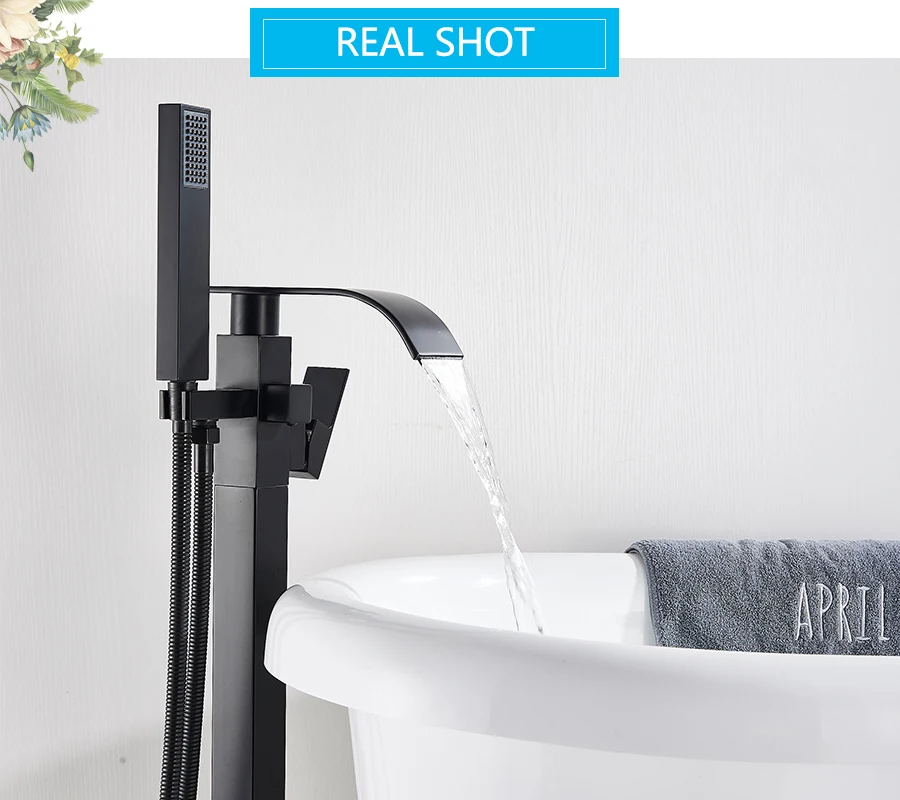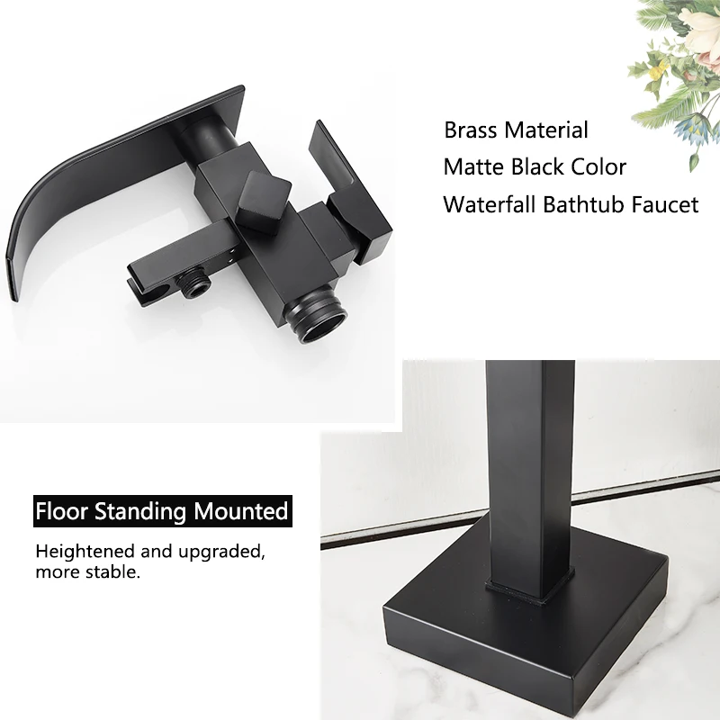 Black Bathtub Shower Faucet Bathroom Brass Square Floor Standing Bathtub Faucets Waterfall Hot Cold Water Mixer Tap