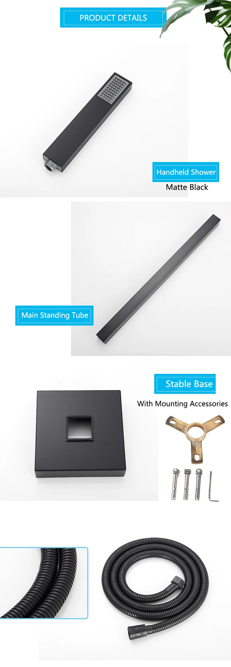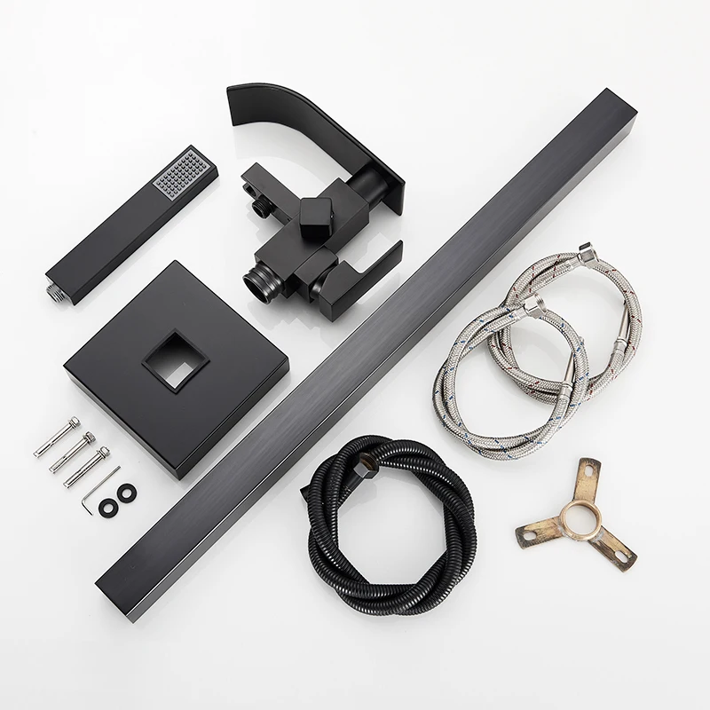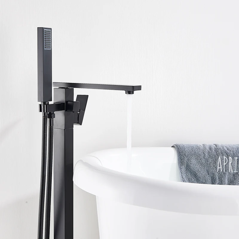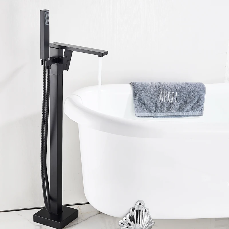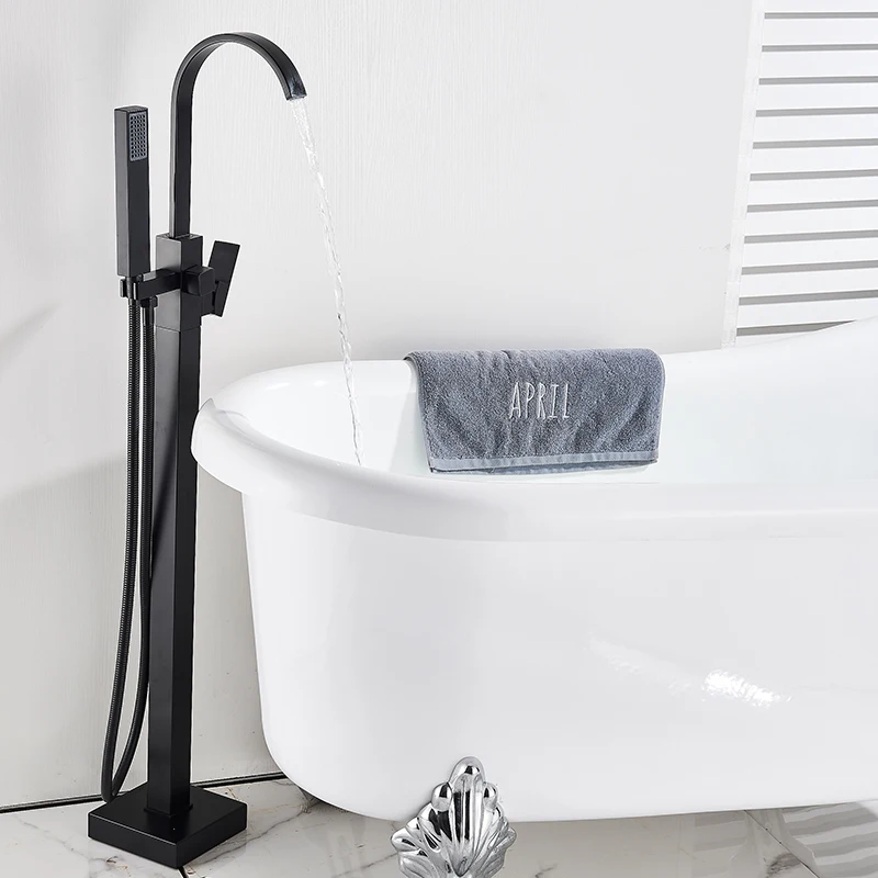 Black Bathtub Shower Faucet Bathroom Brass Square Floor Standing Bathtub Faucets Waterfall Hot Cold Water Mixer Tap