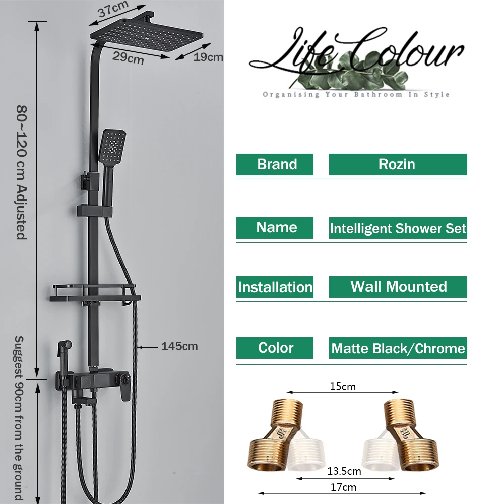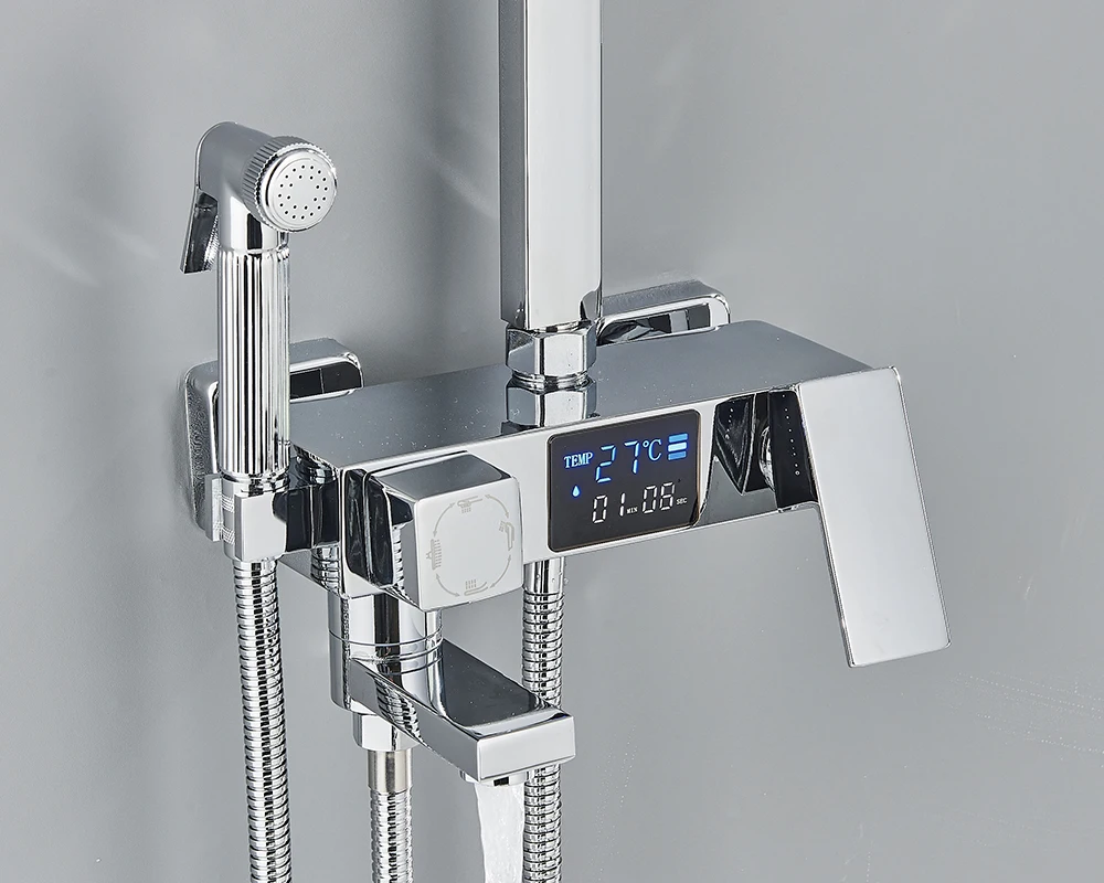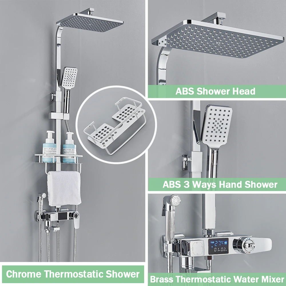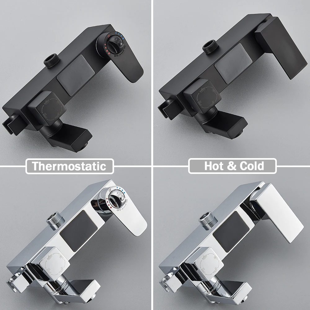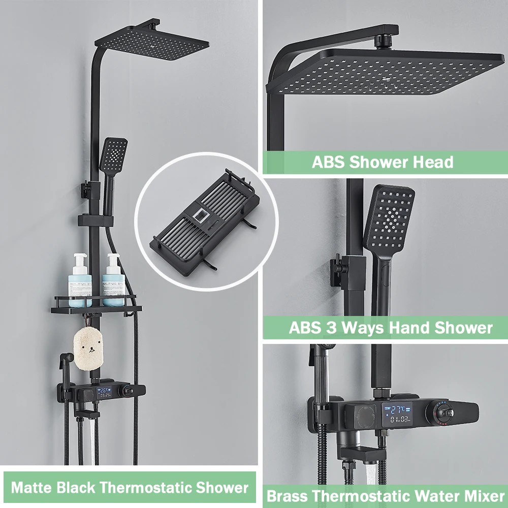 Black Digital Display Thermostatic Shower Faucet Bathroom Thermostatic 4 ways Rainfall Shower Mixer Tap,Shelf and Bidet Faucets