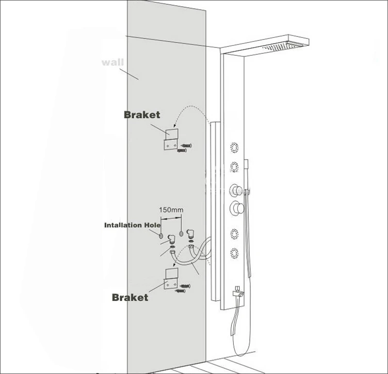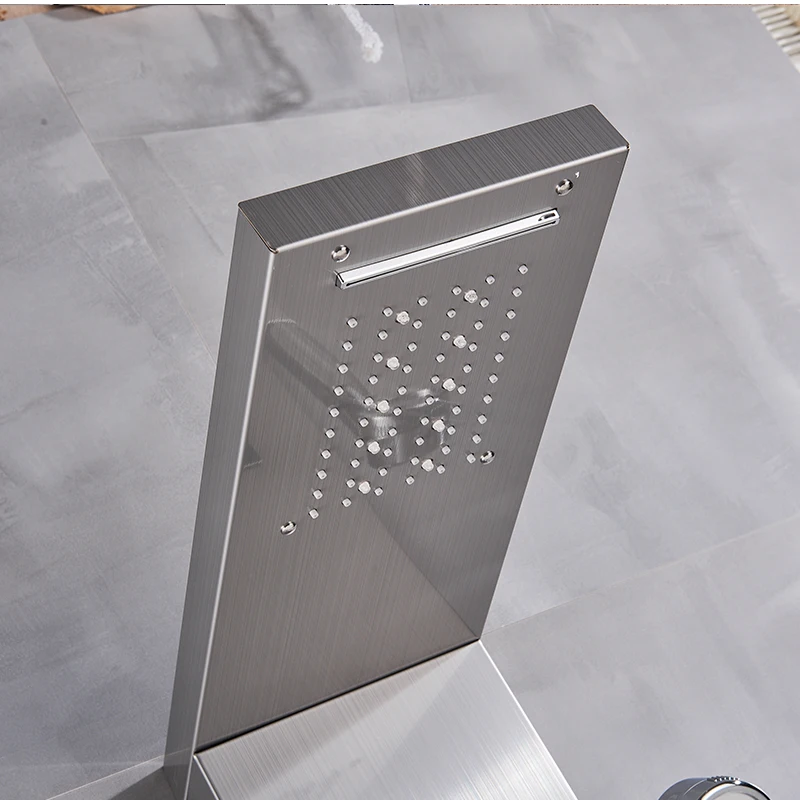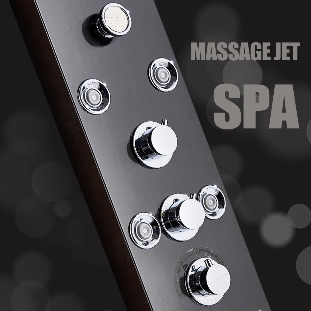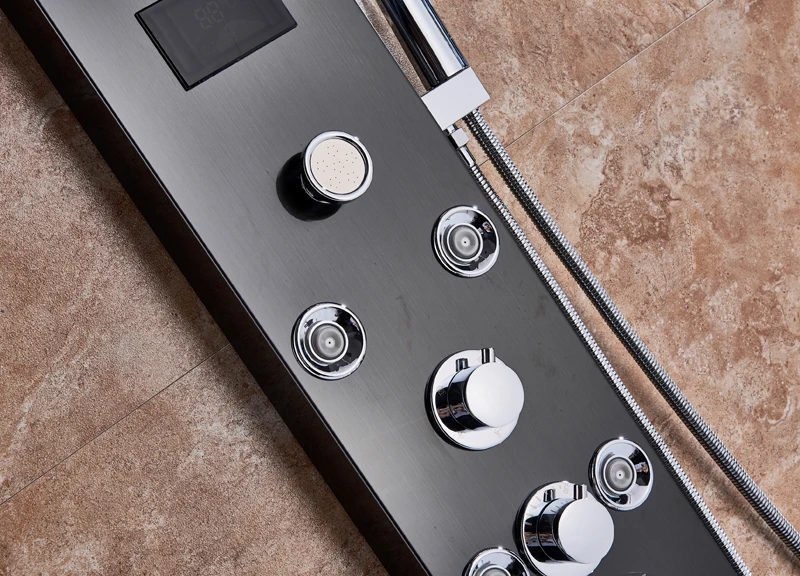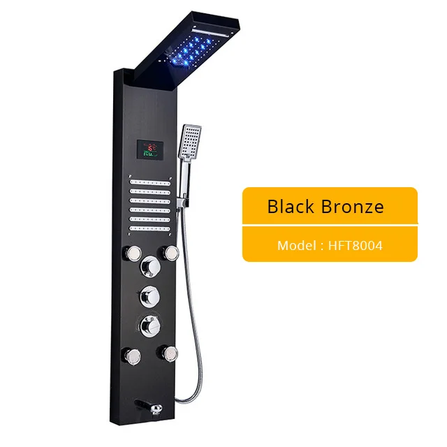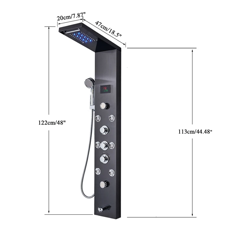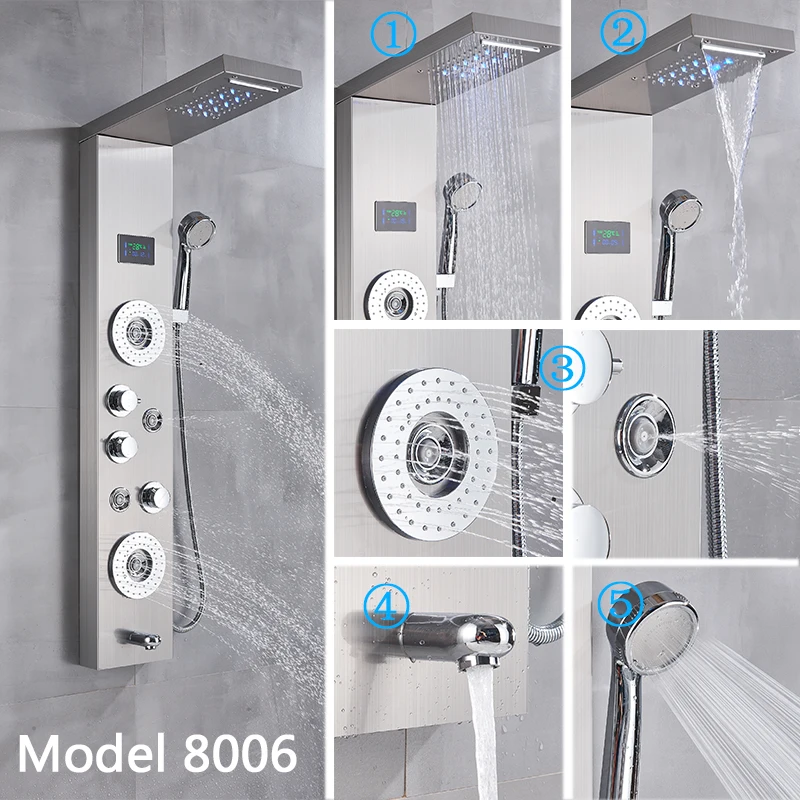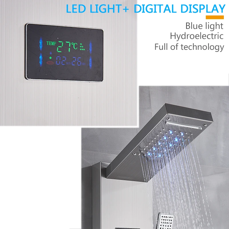 Brushed Nickel Bathroom Shower Column Wall Mounted Black LED Shower Panel Faucets Rainfall Digital Screen 6 Modes Mixer Tap