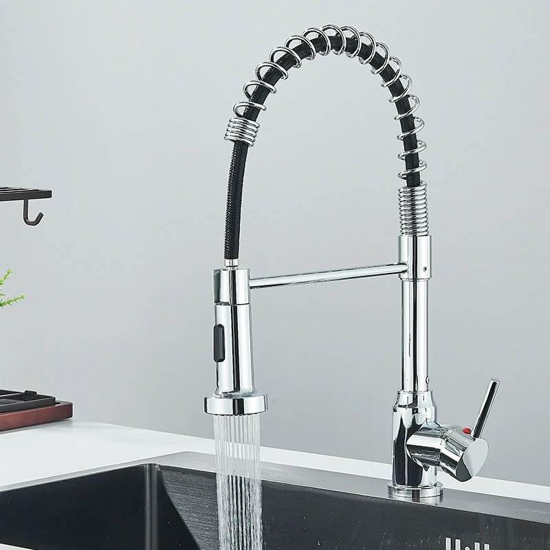 Chrome Spring Pull Down Kitchen Faucets Stream Spray Head Hot Cold Water Tap Stainless steel Rotation Kitchen Mixer Tap Crane
