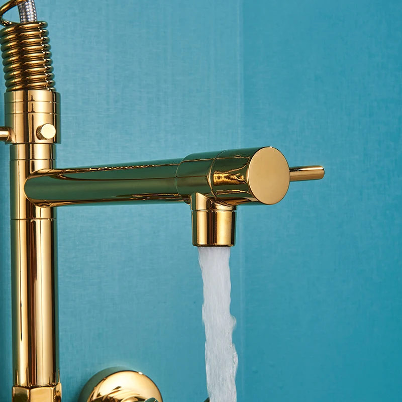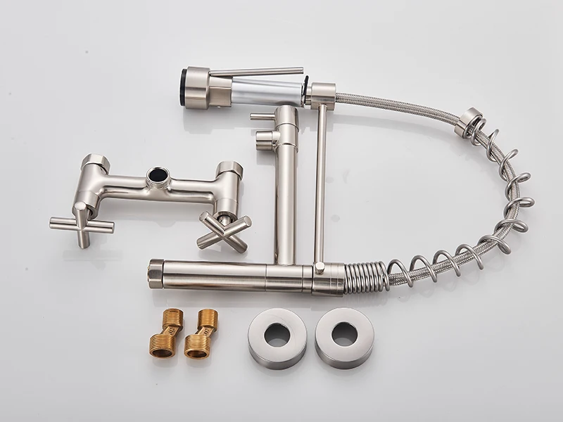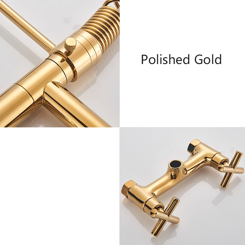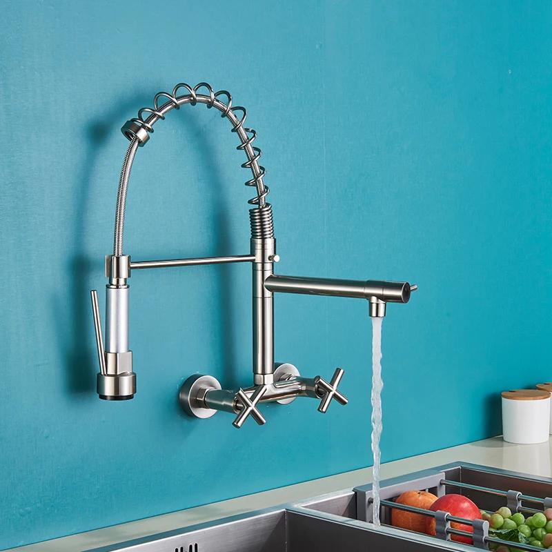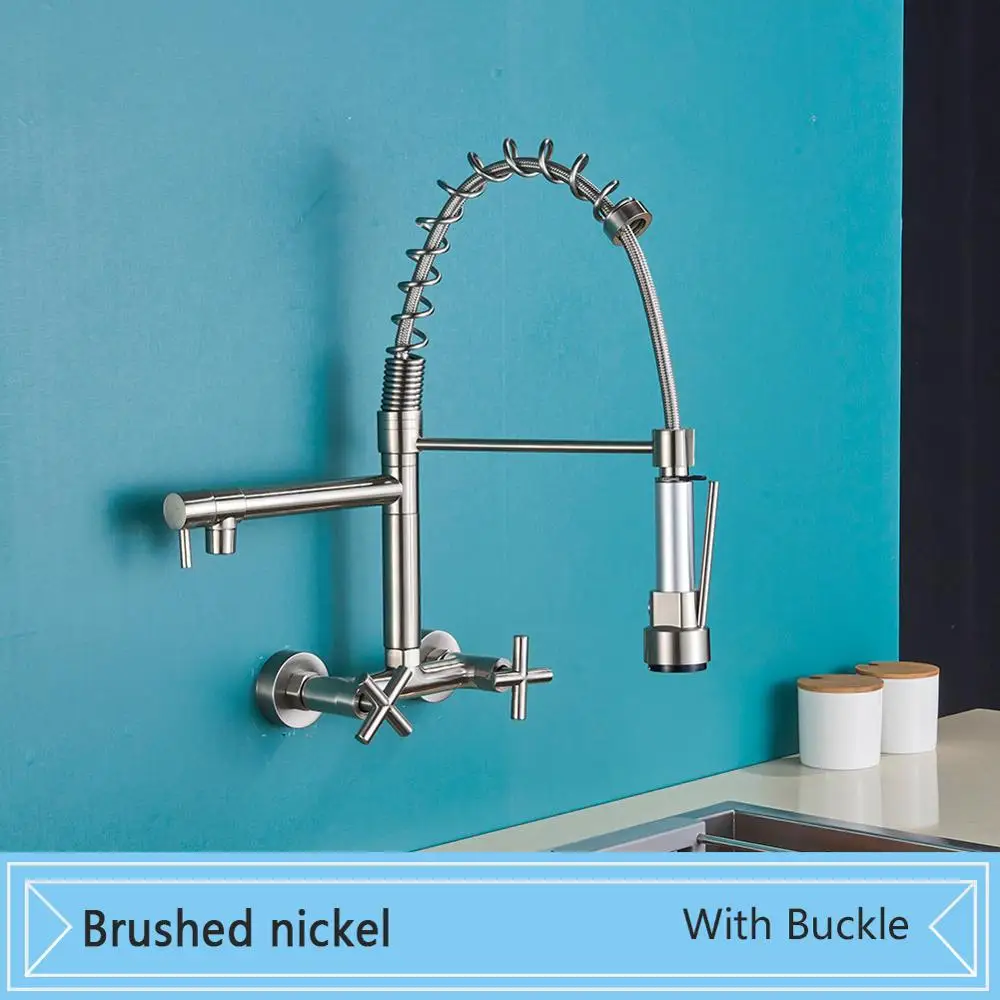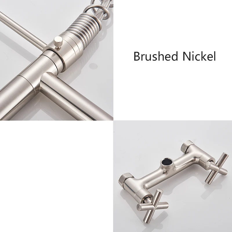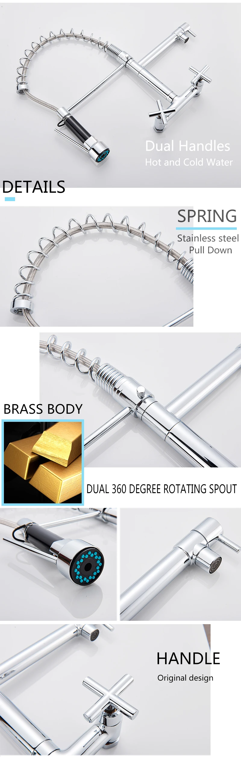 Rozin Black Kitchen Faucet Dual Handles Hot Cold Water Kitchen Mixer Tap Wall Mounted Dual Swivel Spout Spring Pull Down Faucets