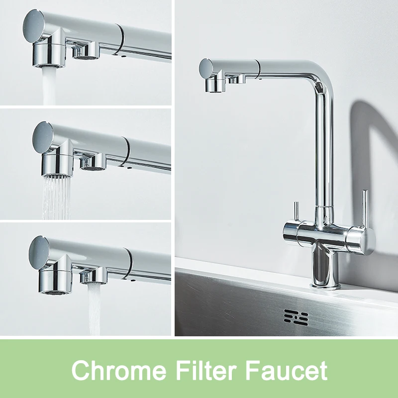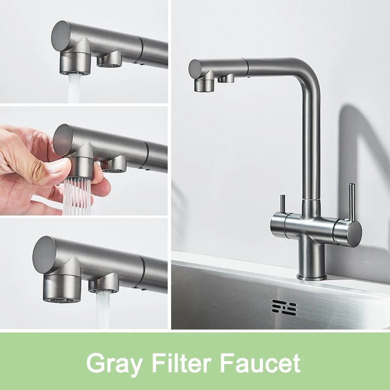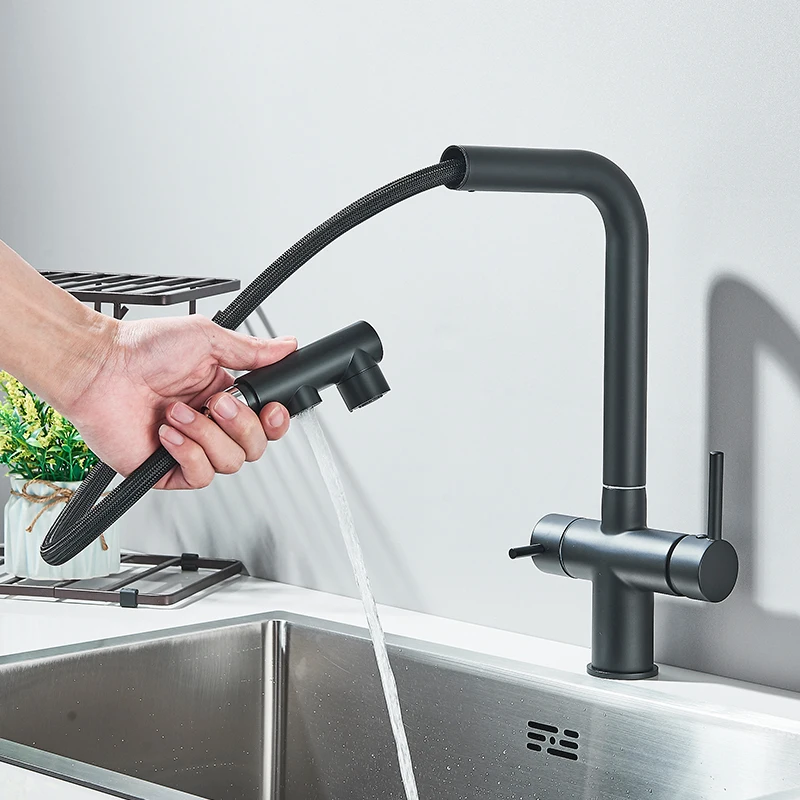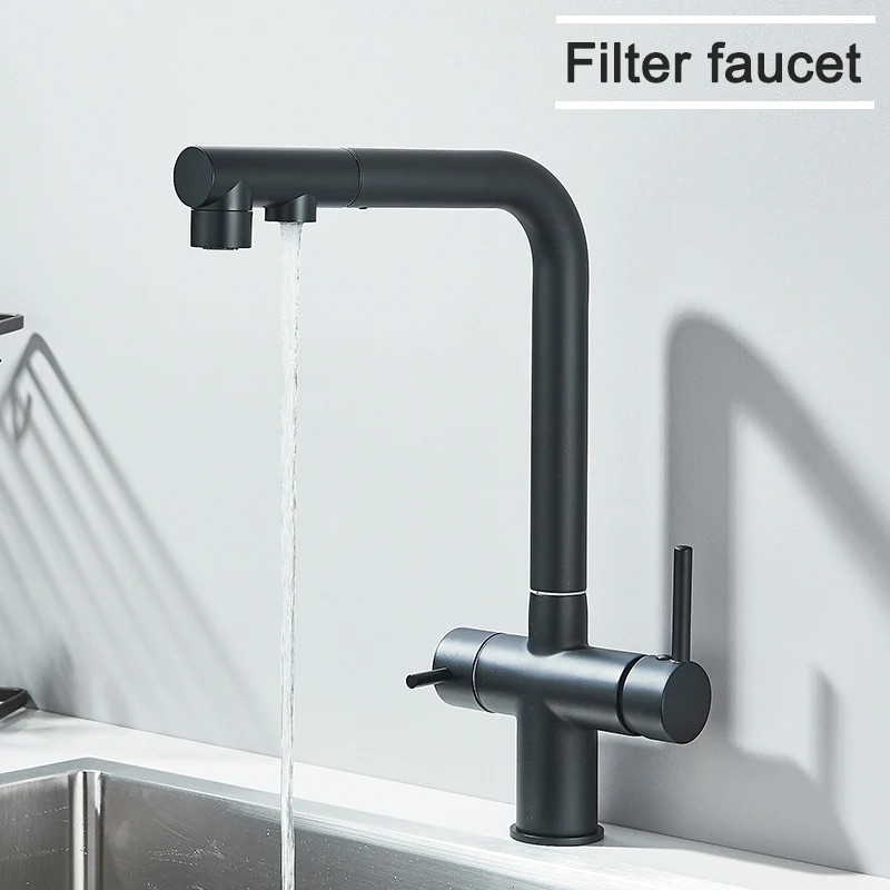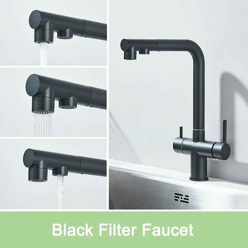 Rozin Water Purifier Kitchen Faucet Black Pull Out Flexible Filter Kitchen Faucets Crane Brass 2 in 1 Hot Cold Water Mixer Tap